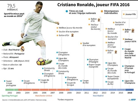 À 31 ans, le Portugais s'offre ainsi un nouveau trophée après le Ballon d'Or, remis le 12 décembre. Il y a en effet deux grandes distinctions cette année, puisque la FIFA a remis au goût du jour ses propres prix, après avoir mis fin à sa collaboration instaurée en 2010 avec France Football pour le Ballon d'Or.