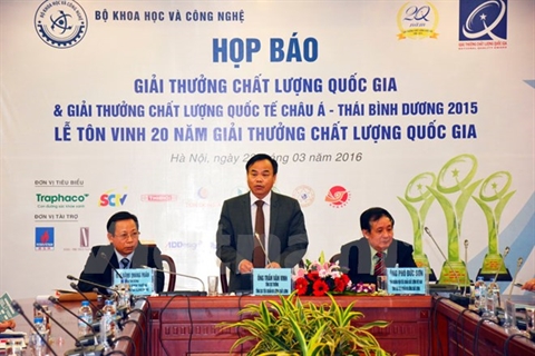 | Conférence de presse pour annoncer le prix national de la qualité, le 23 mars à Hanoi. Photo: VNA/CVN |