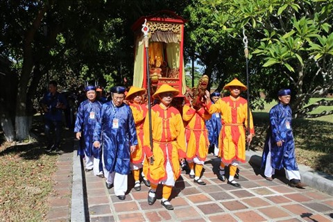 | Cérémonie de procession de la tablette commémorative du roi Hàm Nghi à Huê, le 12 juillet. |
