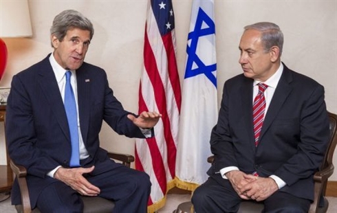 | Le secrétaire d'État américain John Kerry (gauche) et le Premier ministre israélien Benjamin Netanyahu, le 9 avril à Jérusalem. Photo : AFP/VNA/CVN |