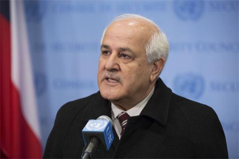 | Le représentant du président palestinien Mahmoud Abbas auprès de l'ONU, Riyad Mansour. |