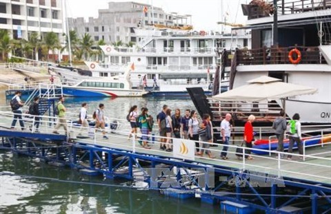 | Touristes étrangers visitant la baie de Ha Long, dans la province de Quang Ninh. |