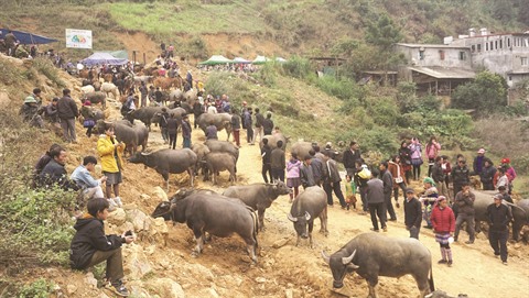 | Cán Câu (province de Lào Cai) est considéré comme le plus grand marché aux buffles du Nord-Ouest. |