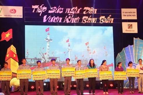 À cette occasion, la Banque d’État a remis 5 milliards de dôngs aux pêcheurs de Quang Ngai, 100 millions de dôngs à dix familles de surveillants des ressources halieutiques et de garde-côtes dans le besoin. La Voix du Vietnam a distribué 200 millions de dôngs aux pêcheurs démunis de Quang Nam, Quang Ngai et Binh Dinh. Nguyên Dang Tiên, son directeur général a déclaré : «En sa qualité d’un grand organe médiatique du Parti et de l’État riche de quatre formats journalistiques : radio, télévision, presse écrite et presse électronique, la Voix du Vietnam a travaillé étroitement avec les autres organes médiatiques dans la communication des politiques et préconisations du Parti et de l’État aux pêcheurs. Ce programme a pour mission d'épauler les pêcheurs dans la pêche hauturière pour développer l’économie et affirmer la souveraineté nationale».