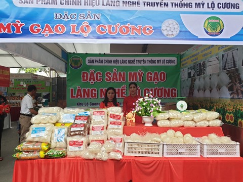 | Des spécialités de la province de Hai Duong (Nord) exposées lors d'une foire commerciale à Hanoï. |