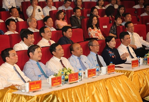 | Le Premier ministre Nguyên Xuân Phuc (4e, gauche, 1er plan) lors du programme “Œuvrons pour une société sûre face aux catastrophes naturelles” le 20 mai à Hanoï. |