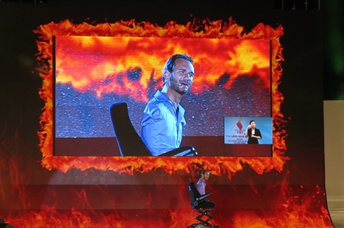 | Nick Vujicic, un jeune australien né sans bras ni jambes le plus spécial de la planète, samedi 24 mai à Hanoi |