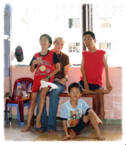 | La directrice américaine Courtney Marsh, Lê Minh Châu et ses amis. |