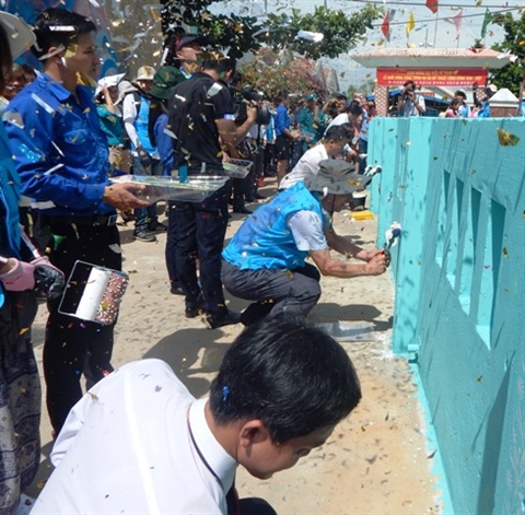 | Des dirigeants locaux et artistes sud-coréens peignent les murs dans le village de pêcheurs de Tam Thanh. |