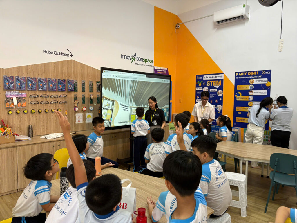 Dans chaque école participante, le projet aménage un coin d'expérience situé à la bibliothèque ou dans une zone pratique, afin d'encourager l'interaction directe des élèves. Cet espace est équipé de technologies modernes, notamment des tablettes installées avec la Bibliothèque électronique culturelle et des écouteurs pour expérimenter le contenu multimédia. Cela est combiné avec des kits d'apprentissage, des jouets folkloriques, des modèles de patrimoine culturel et des instruments de musique folkloriques intégrant des codes QR et la technologie de réalité augmentée (RA). Grâce à cela, les élèves n'apprennent pas seulement des connaissances, mais développent également des compétences de vie et une conscience de la protection de l'environnement à travers des activités interactives amusantes. Par exemple, les enfants peuvent scanner le code QR sur un instrument de musique pour écouter des sons folkloriques ou utiliser la RA pour explorer le patrimoine culturel de manière vivante, transformant l'heure de cours en une aventure passionnante.