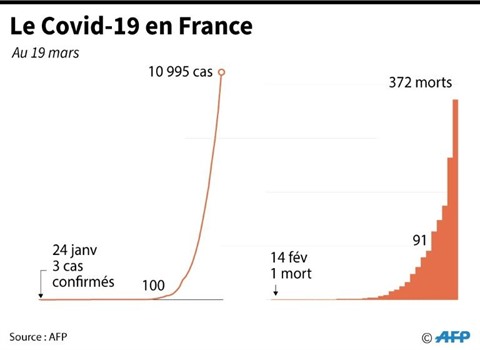 Depuis mercredi soir 18 mars, 91 cas lourds ont rejoint les services de réanimation, portant leur total à 1.122. "Les cas de contamination doublent tous les quatre jours" : "l'épidémie est importante et s'étend, avec une circulation virale rapide et intense", a mis en garde le DGS. Dans un communiqué au chef de l'État, l'Intersyndicale nationale des internes (Isni) a appelé les autorités à "cesser les demi-mesures et les discours équivoques" et réclamé un "confinement total et absolu de l'ensemble de la population". "Moins le confinement sera strictement appliqué, plus les réanimations seront saturées, plus nous devrons faire des choix", préviennent-ils.