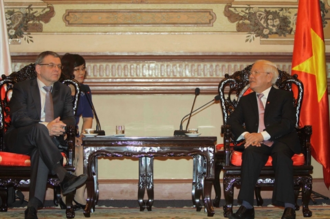 | Le ministre tchèque des Affaires étrangères, Lubomir Zaoralek (gauche), a rencontré le 22 octobre, le président du Comité populaire municipal de Hô Chi Minh-Ville, Lê Hoàng Quân. |