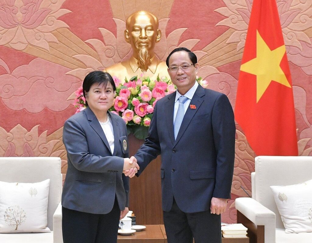 | Le vice-président de l'Assemblée nationale, Trân Quang Phuong (droite), reçoit la rectrice de l'Université royale Rajabhat d'Udon Thani, Khanisara Thansunthornsakun. |