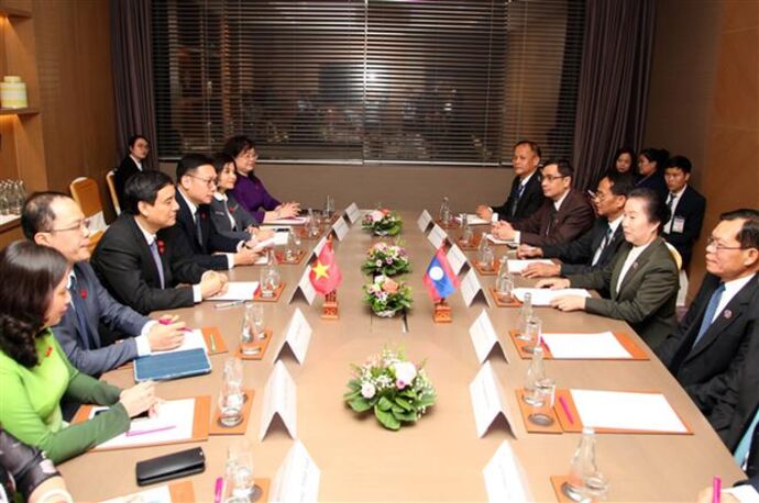 Bùi Van Cuong et Pingkham Lasasimma ont discuté des activités de coopération entre les Secrétariat et Bureau de l'AN des deux pays dans les temps à venir, dont la coordination dans les préparatifs de l'organisation de l'AN de l'AIPA-45. Ils ont convenu aussi de mettre en œuvre en temps opportun les contenus du premier sommet parlementaire CLV, ainsi que des activités de coopération entre les AN des trois pays.