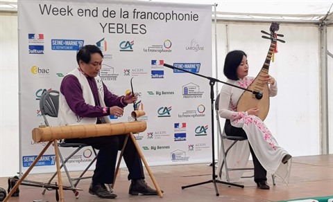 | Interprétation musicale avec des instruments traditionnels du Vietnam lors du Week-end de la Francophonie 2019 à Yèbles. |