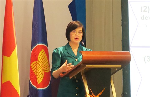 | L’ambassadrice Nguyên Nguyêt Nga, conseillère supérieure du Comité national de l’ASEAN 2020, au séminaire de l’AICHR |