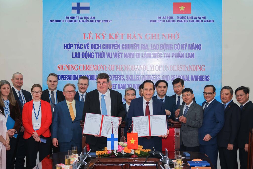 Après leur entretien, les deux ministres ont signé un protocole d'accord entre le ministère du Travail, des Invalides et des Affaires sociales du Vietnam et le ministère des Affaires économiques et de l'Emploi de Finlande, affirmant qu’une coopération durable et mutuellement bénéfique constituait la base pour promouvoir l’envoi d'experts, de travailleurs qualifiés et de travailleurs saisonniers vietnamiens en Finlande de manière transparente, durable, éthique et contre l'exploitation et les abus, conformément aux lois des deux pays.