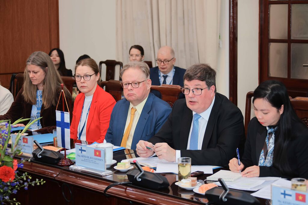 | Le ministre finlandais Arto Olavi Satonen (2e à droite) a émis le souhait de renforcer la coopération entre les deux pays. |