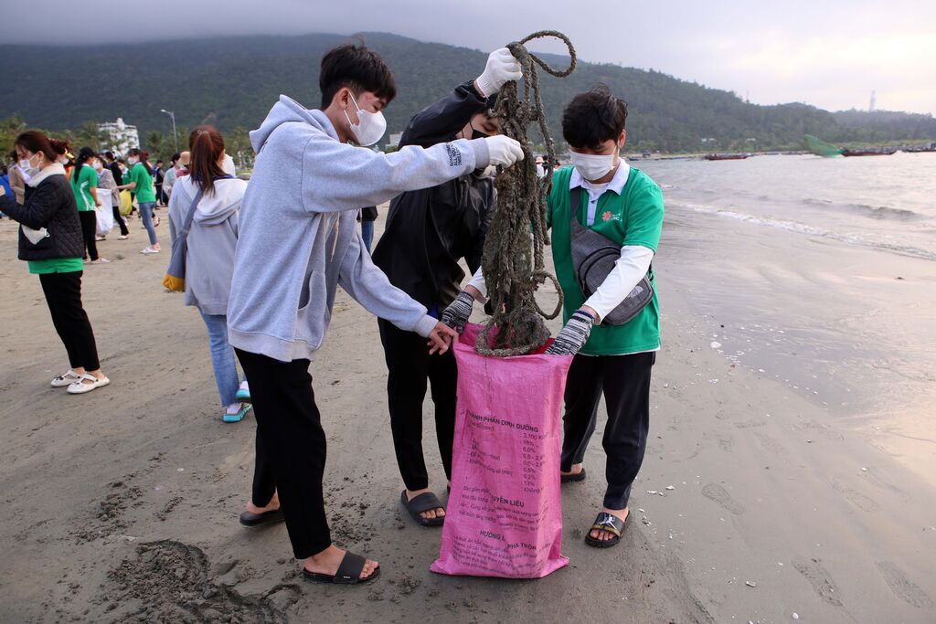 | Des jeunes de Dà Nang nettoyent les plages dans leur ville. |