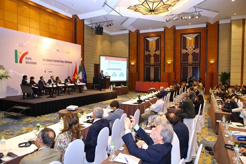 | Vue générale du Forum des affaires Vietnam - Italie. |