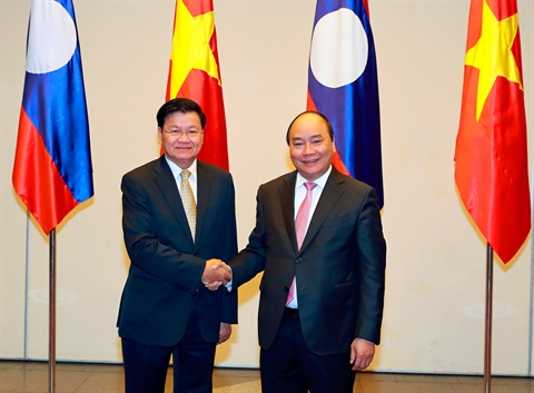 | Le Premier ministre vietnamien Nguyên Xuân Phuc (droite) et son homologue lao Thongloun Sisoulith, le 8 février à Hanoï. |