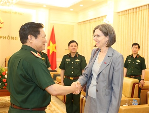 | Le général Ngô Xuân Lich et Deborah Paul, nouvelle ambassadrice du Canada au Vietnam. |