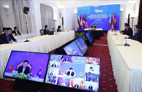 | Dialogue virtuel entre les ministres des Affaires étrangères de l'ASEAN et les représentants de la Commission intergouvernementale des droits de l’homme de l'ASEAN, le 10 septembre. |