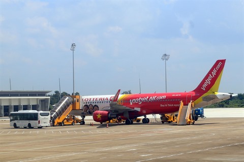 | Un avion de Vietjet Air à l'aéroport international de Nôi Bài. |