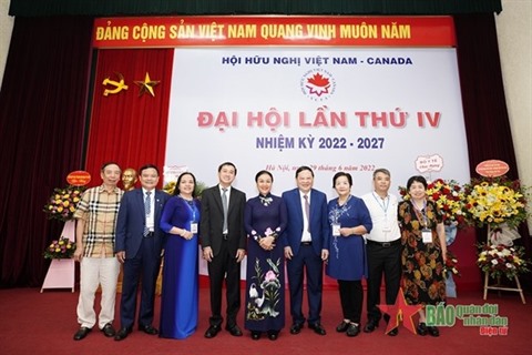 | Les délégués vietnamiens et canadiens prennent la pose lors de l'événement. |