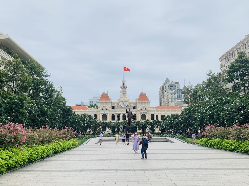 | Des touristes découvrent un site à Hô Chi Minh-Ville. |