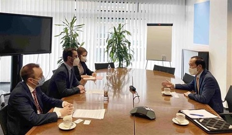| L’ambassadeur du Vietnam en Belgique et au Luxembourg, Nguyên Van Thao (droite), travaille avec des représentants du ministère luxembourgeois de l’Économie. |