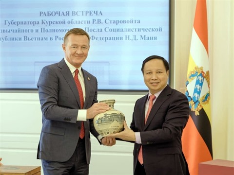 L'ambassadeur Ngô Duc Manh et le gouverneur de la région de Koursk, Roman Starovoit, lors de leur rencontre, se sont réjouis du développement croissant du partenariat stratégique intégral Vietnam - Russie ces derniers temps.