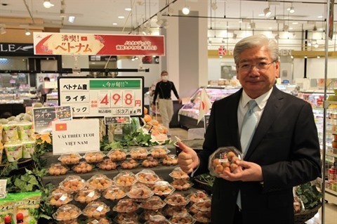 | Stand de litchi vietnamien au supermarché AEON (Japon). |