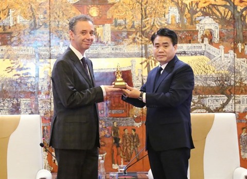 | Le président du Comité populaire municipal de Hanoï, Nguyên Duc Chung (droite), et l’ambassadeur d’Irlande, John McCullagh. |