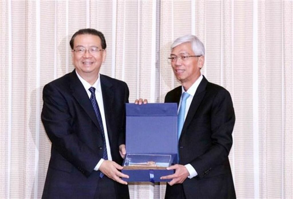 | Vo Van Hoan, vice-président du Comité populaire de Hô Chi Minh-Ville (droite) et Liu Xiaokai, président du Comité du Yunnan de la Conférence consultative politique du peuple chinois. |
