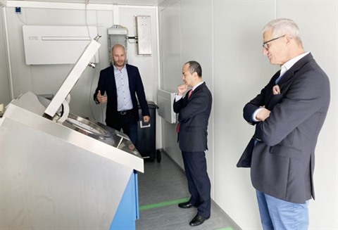 | L'ambassadeur Nguyên Trung Kiên (centre) rend visite à la compagnie Christof Industries. |