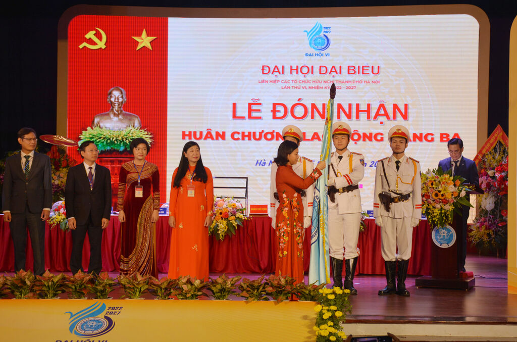 | Cérémonie de remise de l’Ordre du travail de troisième classe à l'Union des organisations d'amitié de Hanoï, le 15 novembre. |