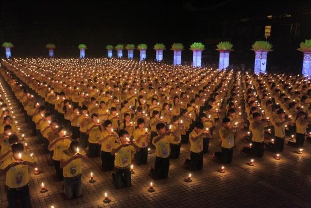 | Cérémonie d'allumage de bougies pour prier pour la paix mondiale dans le cadre de la 11e Journée du Vesak des Nations unies à la pagode Bai Dinh, dans la province de Ninh Binh. |