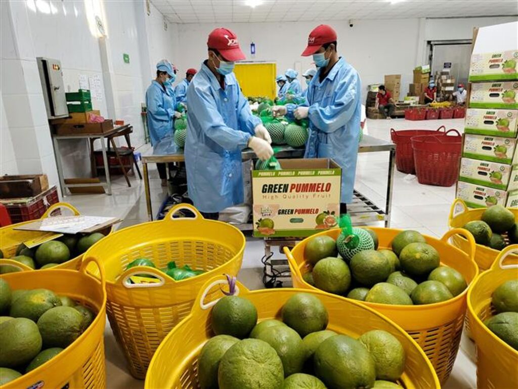 | Emballage de pamplemousse pour l'exportation à Bên Tre (Sud). |