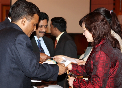 | Les entrepreneurs indiens et vietnamiens partagent des informations. |