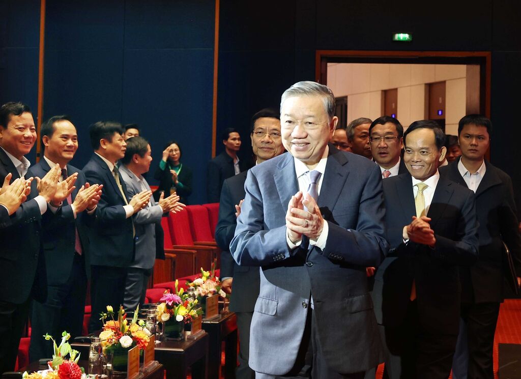 | Le secrétaire général du Parti, Tô Lâm, participant au 6e Forum national sur le développement des entreprises de technologie numérique, mi-janvier 2025. |