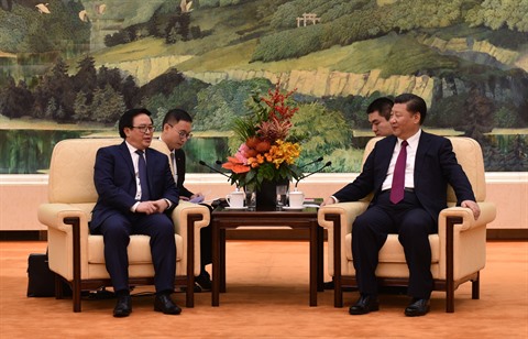 | Hoàng Binh Quân (gauche) et Xi Jinping, le 30 octobre à Pékin. |