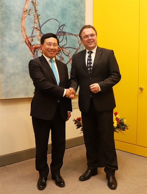 Dans le cadre de cette visite, Pham Binh Minh a eu une séance de travail avec le ministre allemand de l’Économie et de l’Énergie, Peter Altmaier.