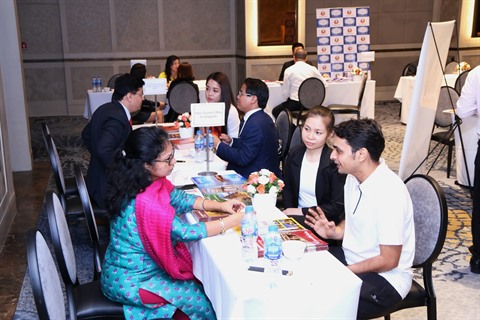 | Les agences de voyage vietnamiennes et indiennes se rencontrent et échangent directement lors de l'événement. |