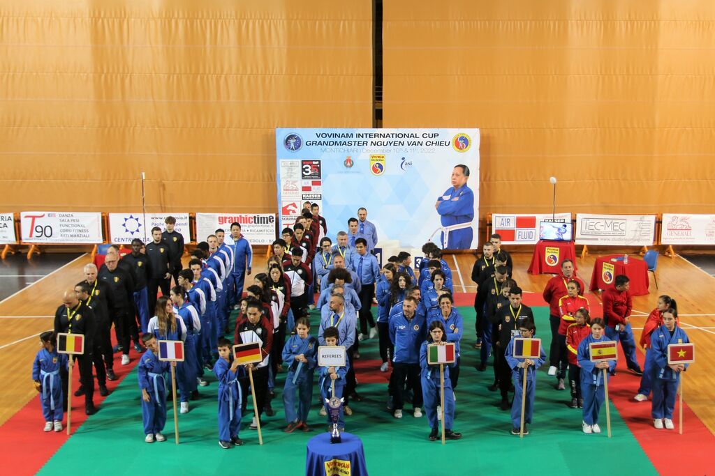 | Des délégations participant à la Coupe internationale de Vovinam 2022 - Grand Maître Nguyên Van Chiêu en Italie. |
