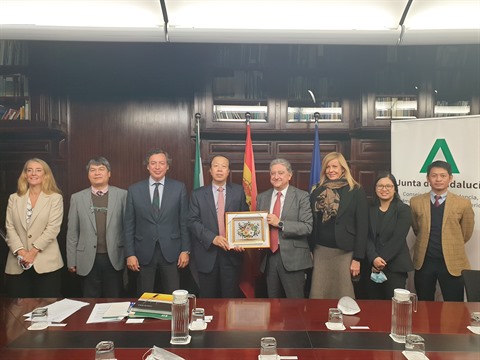 | L'ambassadeur du Vietnam en Espagne Hoàng Xuân Hai (4e à gauche) a travaillé avec le secrétaire général chargé des affaires étrangères de l’Andalousie. |