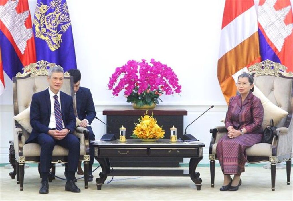 Men Sam An a salué le fort développement du Vietnam sous la direction du Parti communiste du Vietnam, en particulier dans les domaines de l'économie, du commerce, de l'industrie et du tourisme. Elle a exprimé sa joie devant la bonne coopération dans tous les chaînes de Parti, d’Assemblée nationale, de gouvernement des deux pays.