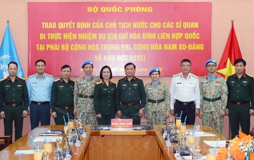 Récemment, trois officiers vietnamiens ont reçu des décisions pour partir et participer à la Mission multidimensionnelle intégrée des Nations unies pour la stabilisation en République centrafricaine (MINUSCA), à la Mission des Nations unies au Soudan du Sud (MINUSS) et à la Force intérimaire de sécurité des Nations unies pour Abiyé (FISNUA), portant ainsi le nombre total de cadres et d'officiers vietnamiens déployés dans les missions de l'ONU à près de 800 personnes.
