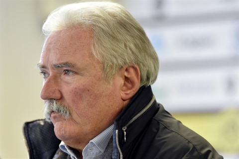 | Le président de Metz Bernard Serin en conférence de presse le 28 octobre 2017. |