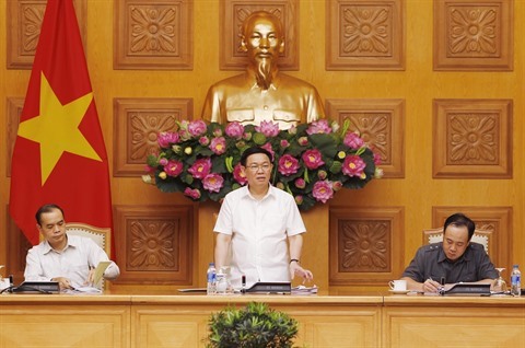 | Vuong Dinh Huê (debout) lors de la réunion du Comité de pilotage de la lutte contre le blanchiment d’argent, le 19 juin 2018 à Hanoï. |